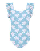 Maldives Blue Turtle Girls Ruffle Swimsuit