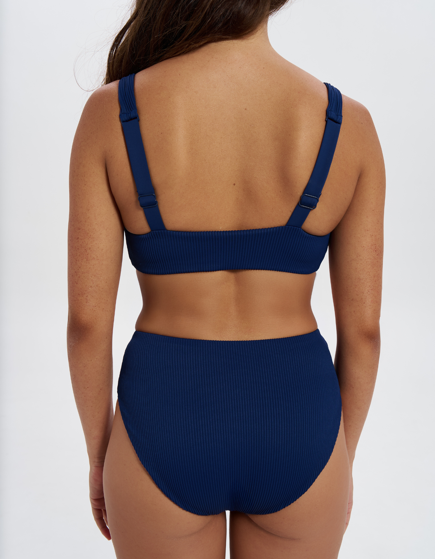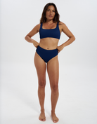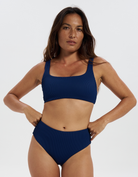 Mid Waist Midnight Blue Womens Ribbed Bikini Bottoms