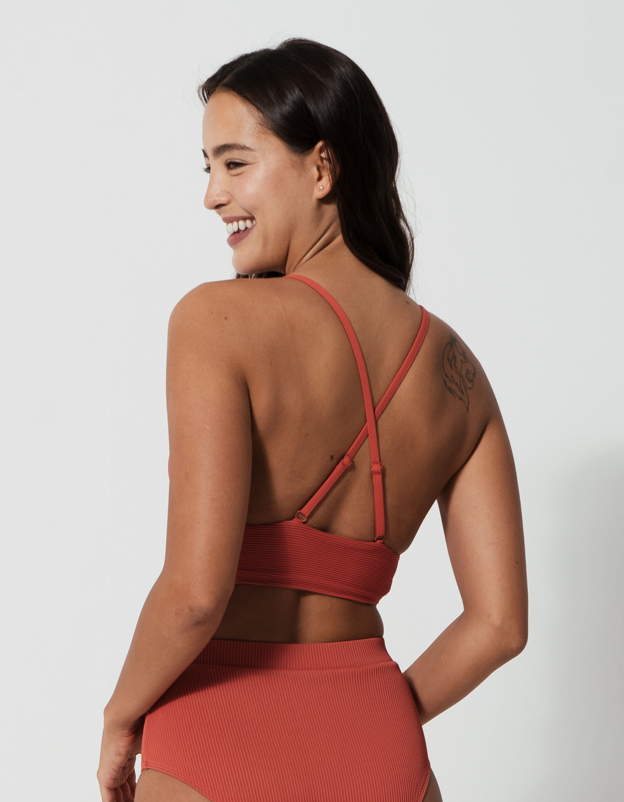 Flores Coral Womens Ribbed Plunge Bikini Top