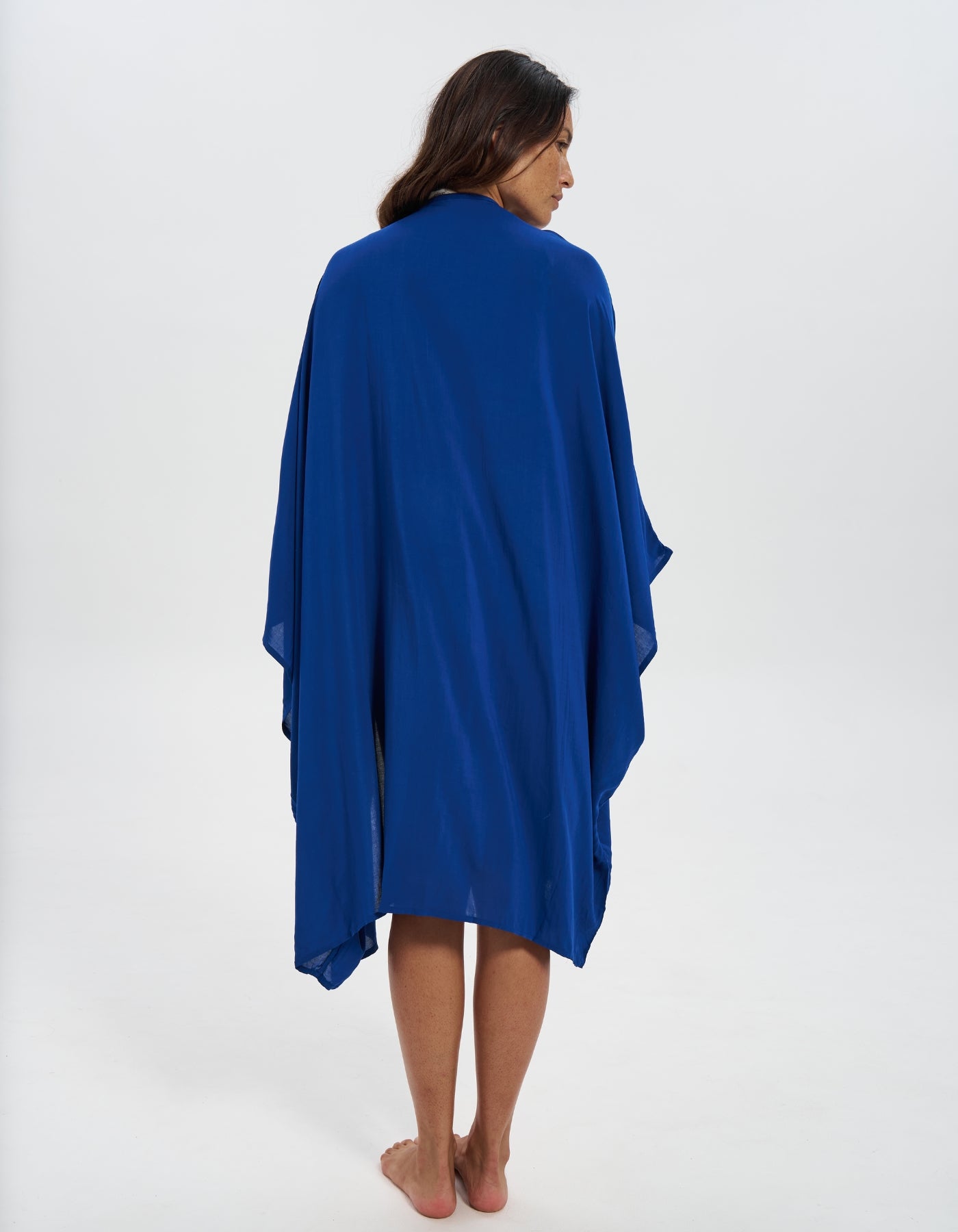 Our sustainable caftan beach cover-up is crafted from eco-friendly Ecovero™ fabric. Made from sustainably sourced wood and pulp, this lightweight, breathable material offers a silky-soft feel with a minimal environmental impact.