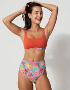 High Waist Pink Palm Womens Bikini Bottoms