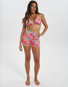 Pink Palm / Coral Womens Reversible Swim Shorts